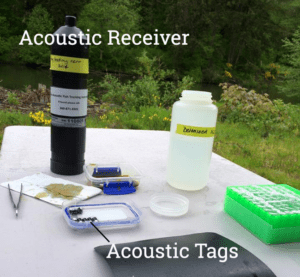 2. Scientists surgically implant a small acoustic tag inside the body cavity of each juvenile steelhead. The tags are the size of a large pill and cost hundreds of dollars each. Each tiny tag is programmed to transmit, or “ping”, a unique code every few seconds. The fish are anesthetized for surgery and placed in a special recovery tank afterwards. They are back up and swimming strong in a matter of minutes!