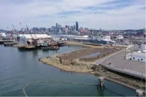 Urban watersheds are one of the most challenging places to conduct habitat restoration because they are constrained by the existing industrial uses and limited availability of potential restoration sites. While it is commonly assumed that habitat restoration in urban estuaries is incompatible with an active working waterfront, the ship building company Vigor has created a “pocket estuary” on their active facility on Harbor Island in downtown Seattleand is continuing to conduct industrial work alongside the restored habitat.