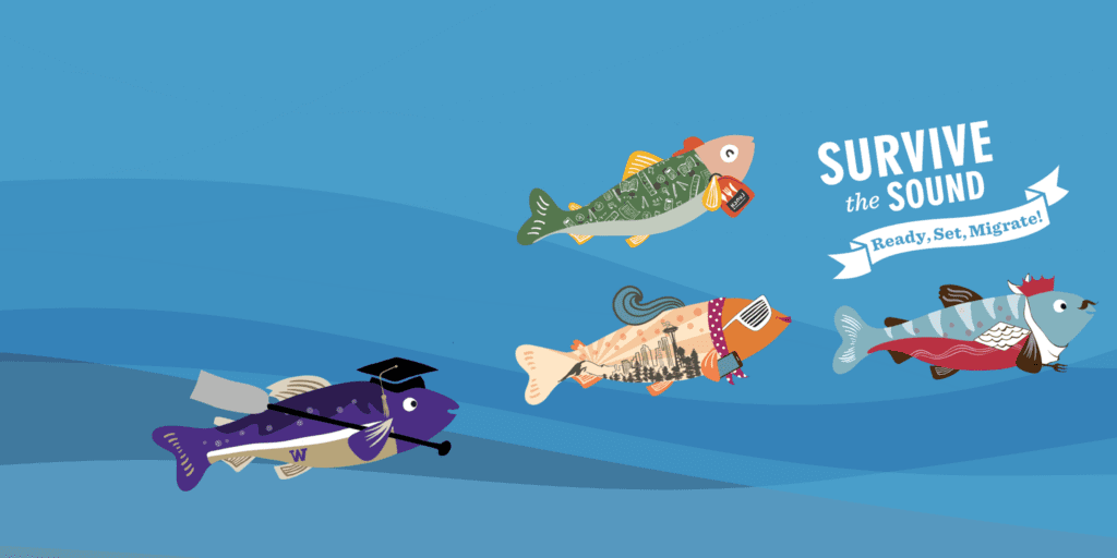 Survive the Sound is a one-of-a-kind event that combines science, art, technology, and education to create a free online fish tracking game that highlights the struggles faced by salmon and steelhead trout during their dangerous journey from their rivers all the way to the Pacific Ocean.